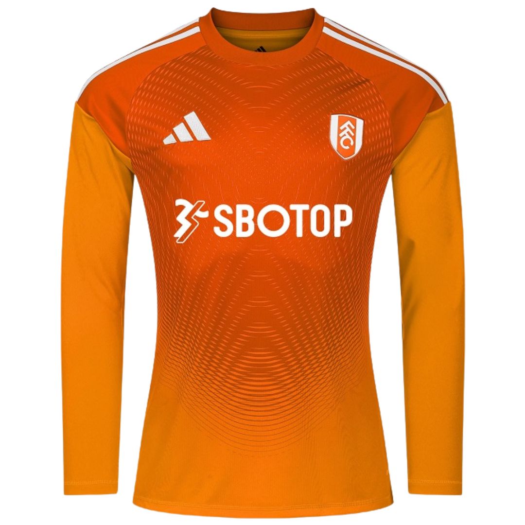 Stand out on the pitch or in the stands with the official-inspired Fulham 25-26 Third Goal Keeper Shirt. This eye-catching goalkeeper jersey features a bold orange-to-white gradient design. Adidas Tiro 25 Competition GK template styling, and the SBOTop sponsor logo. Exactly as worn by Bernd Leno and the Fulham shot-stoppers in the 2025/26 season. Whether you’re a dedicated Fulham FC fan, a goalkeeper looking for match-day or training gear, or searching for the perfect personalised gift, this is the ultimate 25/26 third GK shirt that combines authentic club style with unbeatable quality and value.