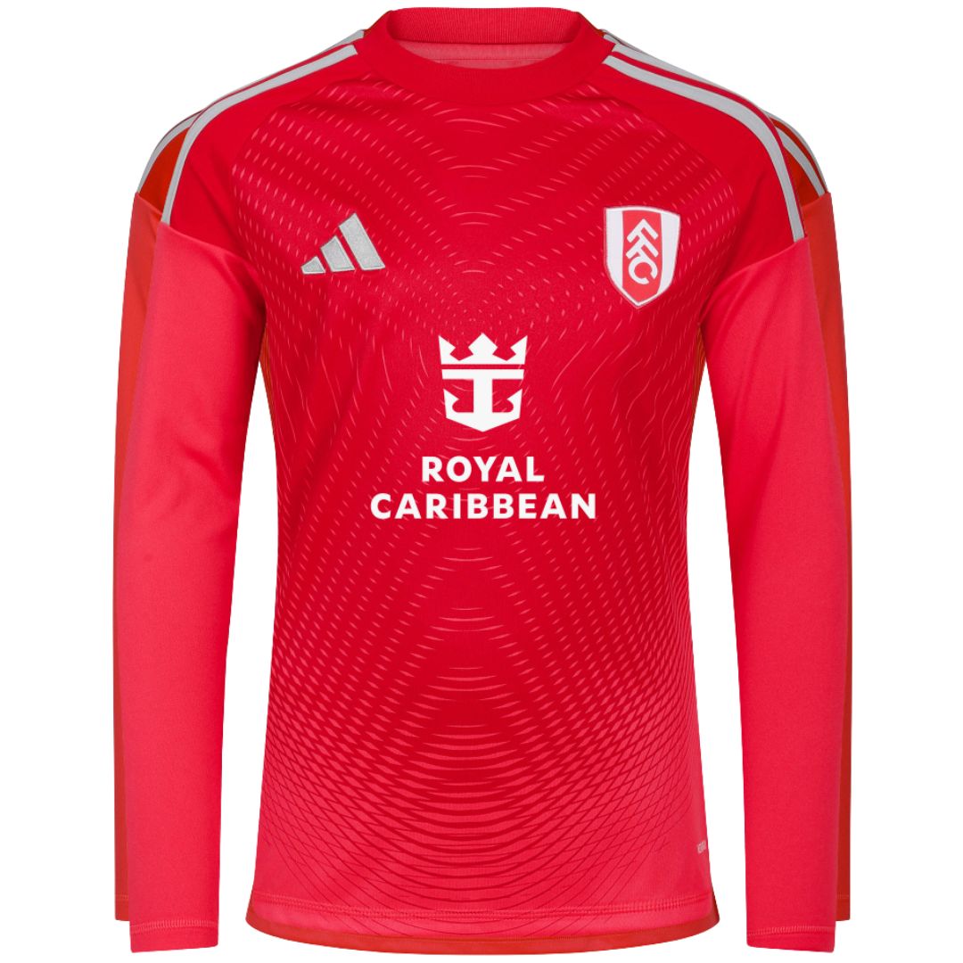 Let your young goalkeeper step onto the pitch with real Fulham pride. This premium Fulham 25-26 Youth Home Goalkeeper Shirt captures every detail of the 2025/26 season home GK kit. The bold red base, sharp geometric accents, iconic club crest, and that unmistakable keeper-ready fit. Designed for aspiring stars who train hard and dream bigger. It delivers the exact look and feel of the professional jersey at a price that makes parents smile.